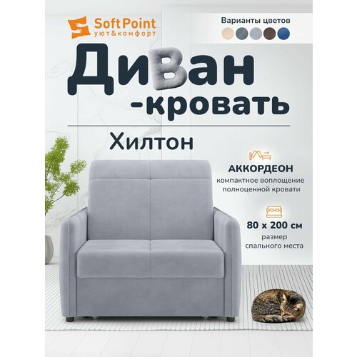 Диван-кровать раскладной Прямой на металлокаркасе, Аккордеон, 80х200 спальное место, Хилтон Светло Серое: сравнение цен, характеристики, фото, актуальное наличие и цены.