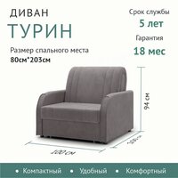 Диван-кровать раскладной Прямой на металлокаркасе, Аккордеон, 80х200 спальное место, Турин Светло Серый: сравнение цен, характеристики, фото, актуальное наличие и цены.