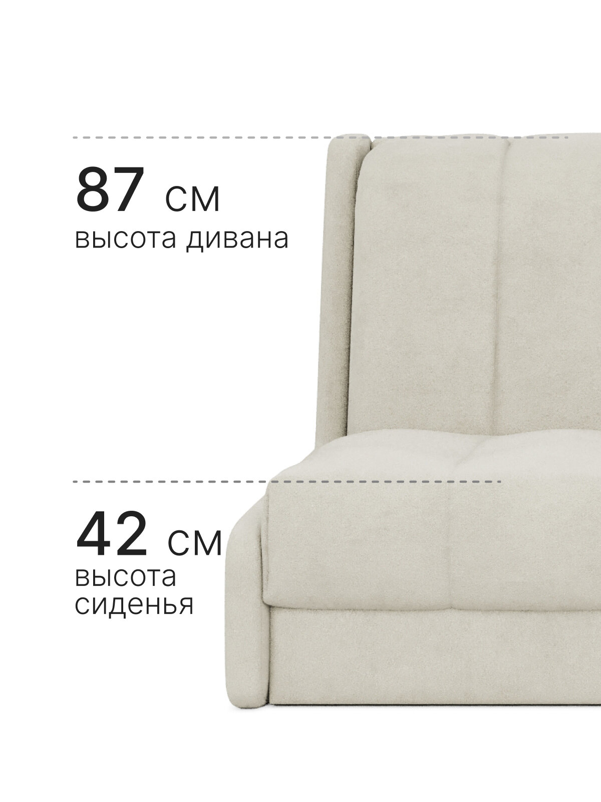 Диван оснащен мягкими подлокотниками, которые обеспечивают дополнительный комфорт при использовании. Высота дивана составляет 87 см, глубина сиденья - 64 см, а ширина - 155 см. Максимальная нагрузка на диван составляет 240 кг.