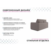 Компактный диван-кровать от фирмы пуше (PUSHE) с простым и удобным механизмом трансформации. При небольших габаритах дивана размер спального места достаточно комфортный — 198×133 см. Диван легко помещается даже в маленькой комнате. Подвижные валики на спинке позволяют менять положение подушек. Декоративные отделочные строчки и глубокие утяжки на сиденье предохраняют ткань обивки от растяжения.