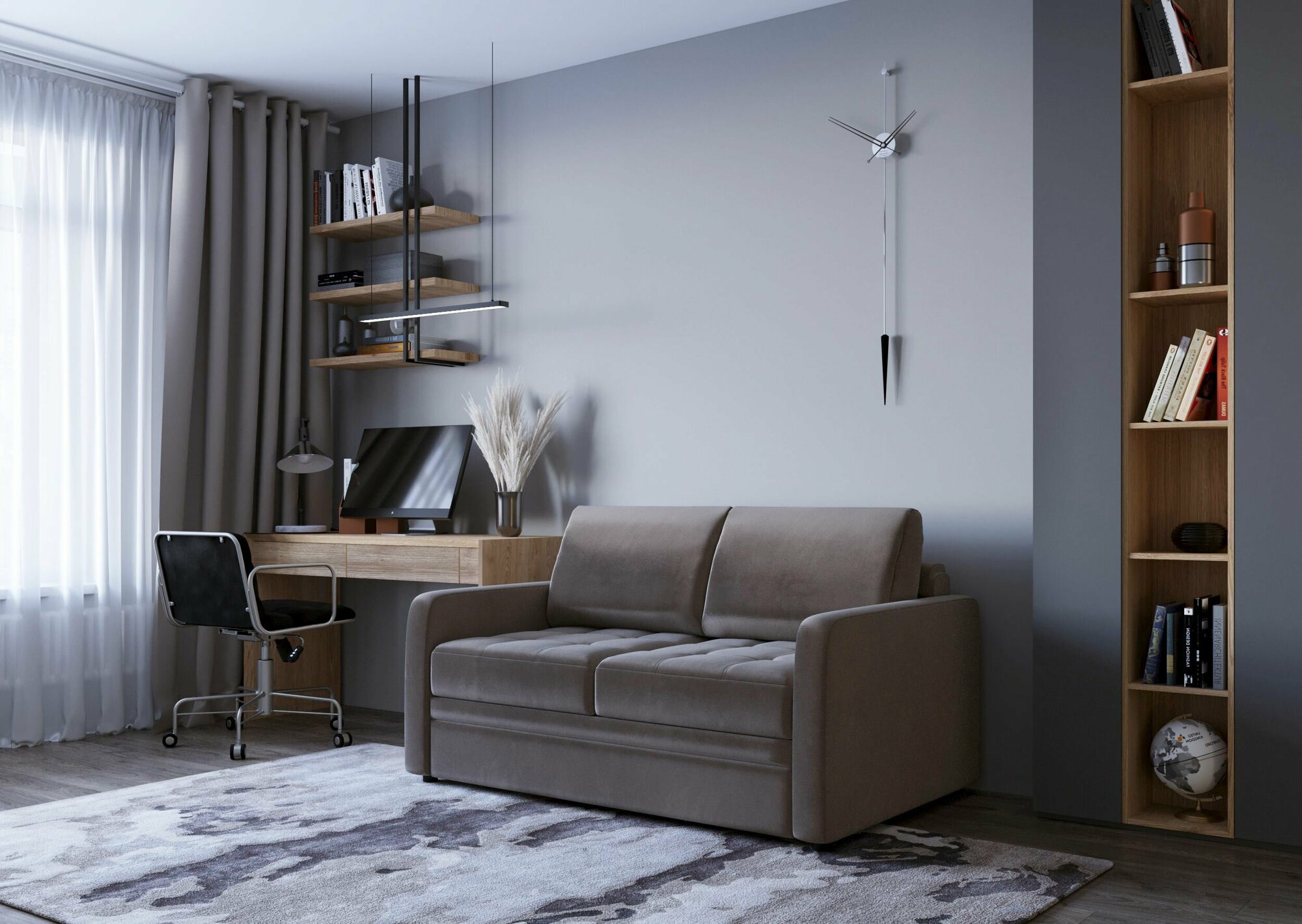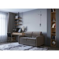 Компактный диван-кровать от фирмы пуше (PUSHE) с простым и удобным механизмом трансформации. При небольших габаритах дивана размер спального места достаточно комфортный — 198×133 см. Диван легко помещается даже в маленькой комнате. Подвижные валики на спинке позволяют менять положение подушек. Декоративные отделочные строчки и глубокие утяжки на сиденье предохраняют ткань обивки от растяжения.