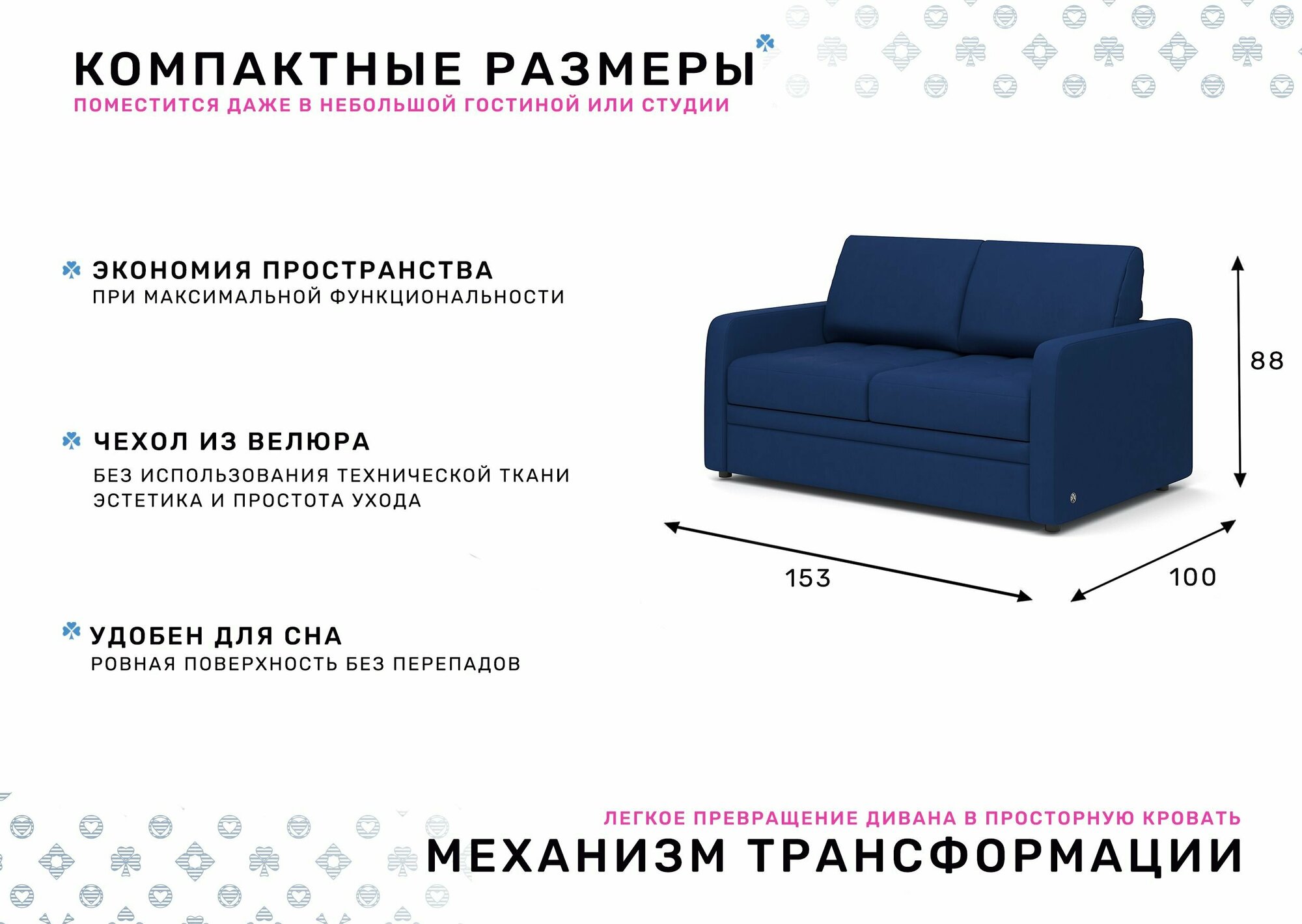 Диван-кровать раскладной PUSHE Бруно 130, велюр, синий Simple 24: сравнение цен, характеристики, фото, актуальное наличие и цены.