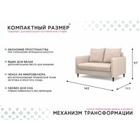 Диван-кровать «Фьорд Smart 120» продолжает идею сочетания функциональности и лаконичности, заданную классическим «Фьордом». Основные черты дизайна остались прежними: тонкие подлокотники, мягкие подушки с отделкой модным «французским швом», изящные конусообразные опоры. Несмотря на небольшие размеры, модель сохранила возможность трансформации: внутри дивана установлен механизм pull&steps (пул энд степс), за счет которого «Фьорд Smart 120» превращается в кровать. При этом внутри по-прежнему есть ящик для хранения, куда можно сложить подушки спинки на время сна. Он же защищает среднюю часть спального места от пыли. В основе дивана – эластичные резинотканевые ремни, благодаря которым отдых на диване становится наиболее комфортным. Несколько слоев высокоэластичной пены обеспечивают правильное распределение нагрузки во время сна. К достоинствам данной модели относятся:
