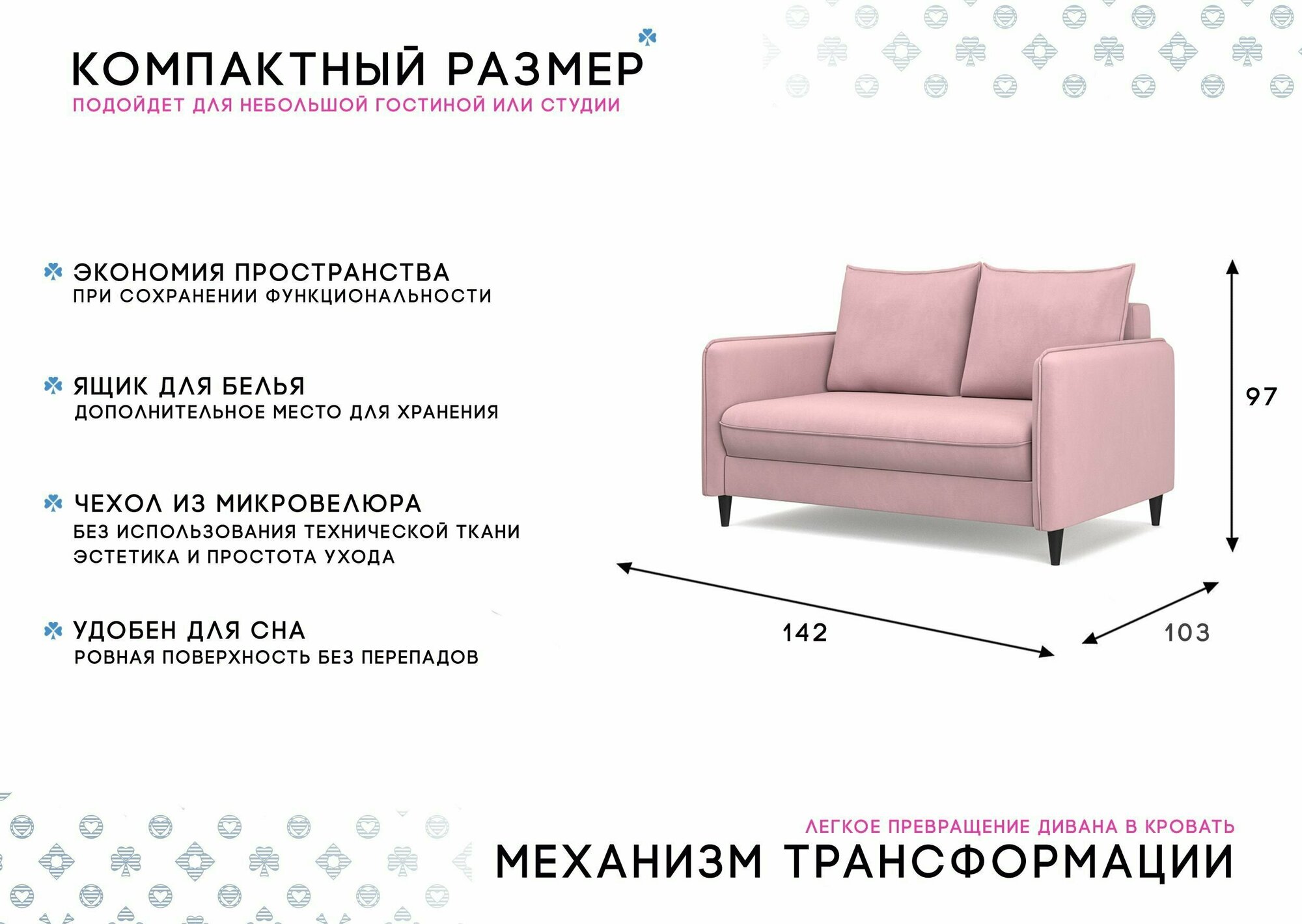 | Особенности | раскладная конструкция, с подлокотниками, съемные подушки, ящик для белья |