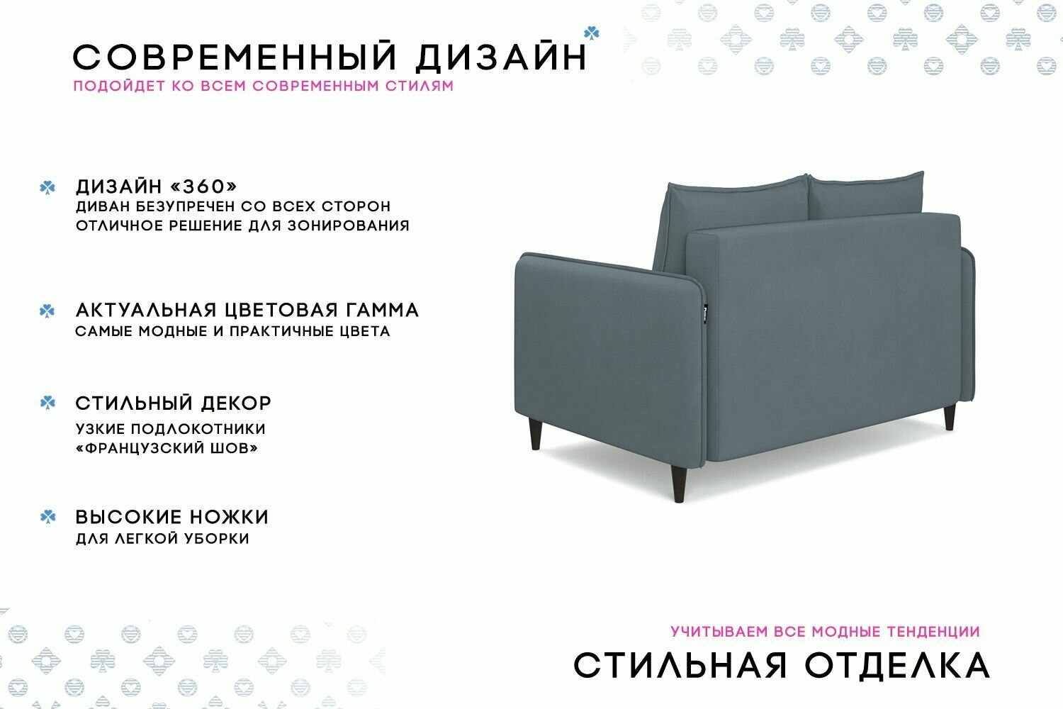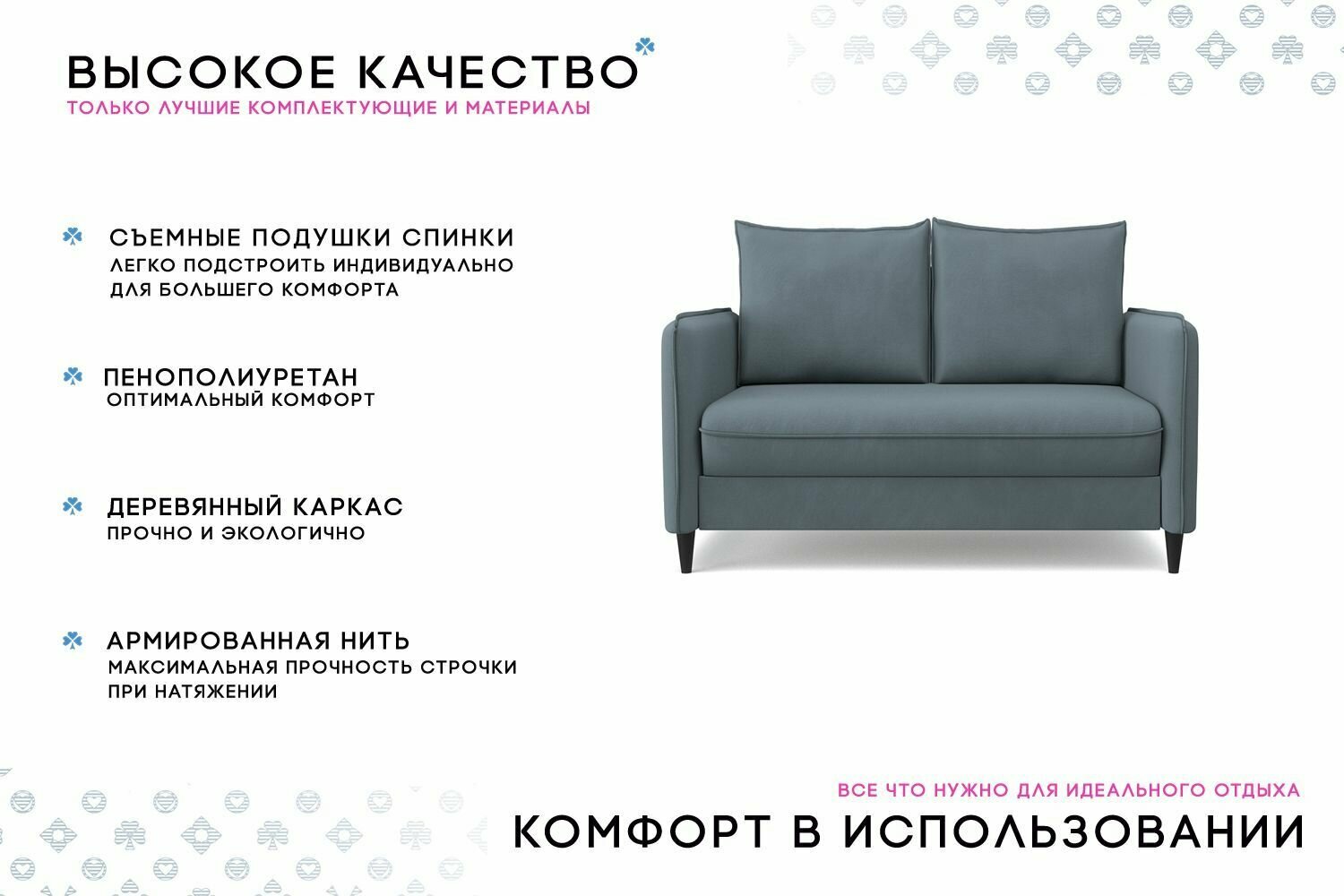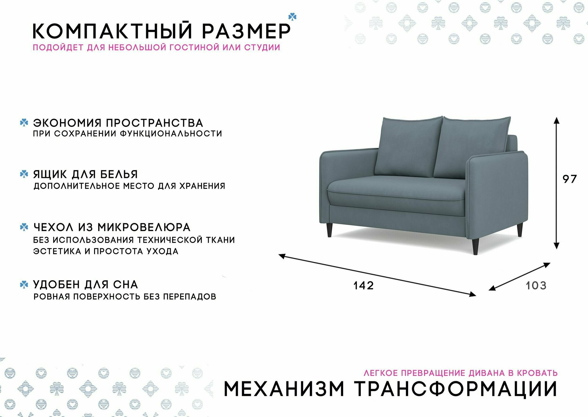 | Особенности | раскладная конструкция, с подлокотниками, съемные подушки, ящик для белья |