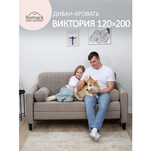 Купить Диван-кровать Romack «Виктория», антивандальный, раскладной, мокко микровелюровая обивка, 120x200x83 см с доставкой по всей России.