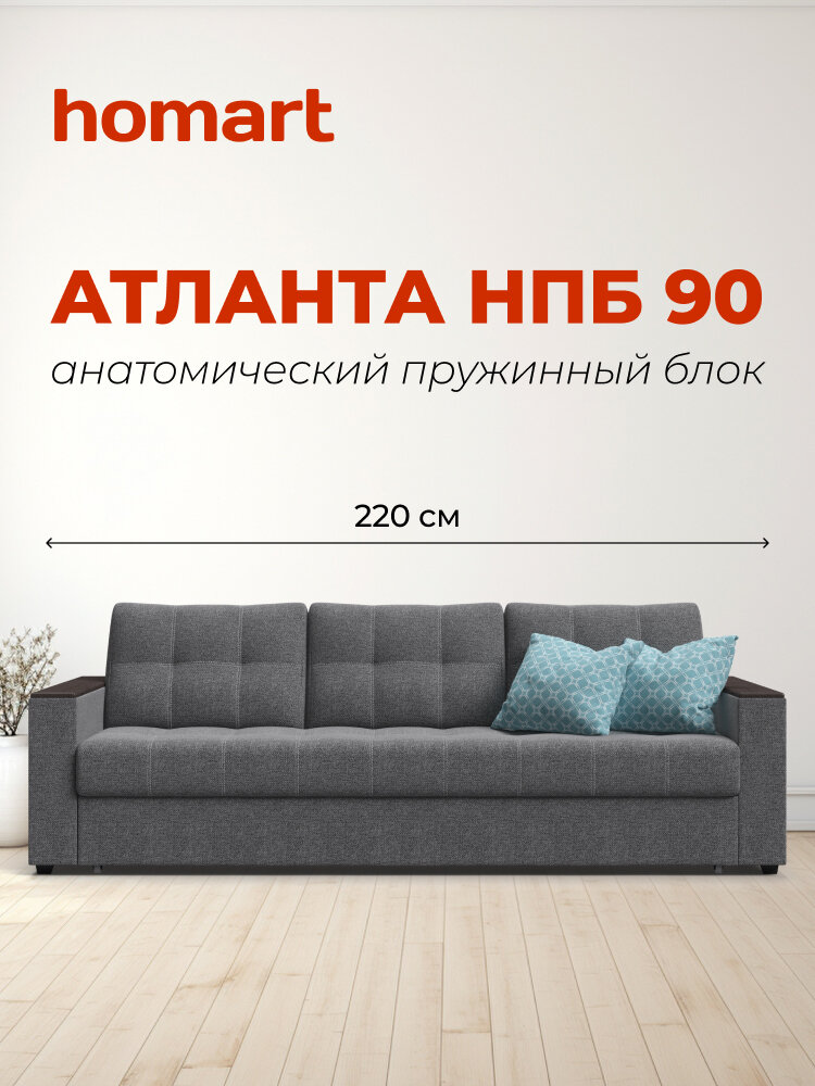 Купить Прямой диван-кровать с ящиком для хранения Атланта 90 НПБ, еврокнижка, рогожка Malmo серый, 220х100х90 см с доставкой по всей России. Прямой диван-кровать с ящиком для хранения Атланта 90 НПБ, еврокнижка, рогожка Malmo серый, 220х100х90 см: сравнение цен, характеристики, фото, актуальное наличие и цены.