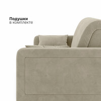 Обивка дивана выполнена из велюра, который приятен на ощупь и прост в уходе. Цвет товара - бежевый, что позволяет ему гармонично вписаться в любой интерьер.