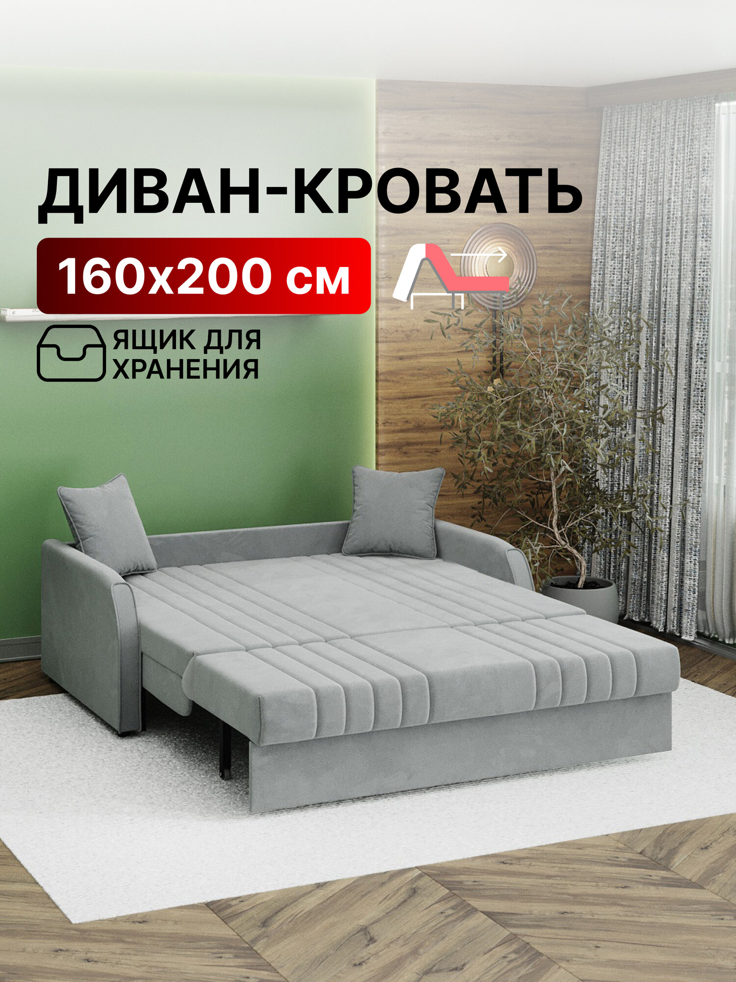 Купить Диван-кровать с ящиком раскладной Аккордеон, ортопедический, 160х200 спальное место, велюр светло-серый с доставкой по всей России. Диван-кровать с ящиком раскладной Аккордеон, ортопедический, 160х200 спальное место, велюр светло-серый: сравнение цен, характеристики, фото, актуальное наличие и цены.