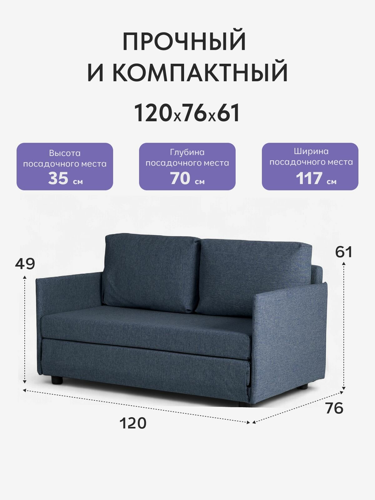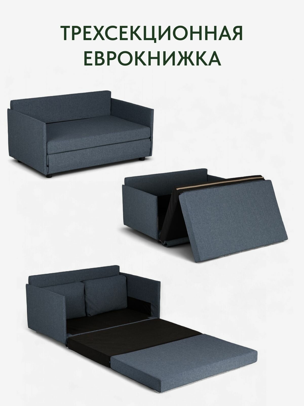 Диван кровать «Сиеста Лайт», 120х61х76, еврокнижка, синий рогожка, Divan24: сравнение цен, характеристики, фото, актуальное наличие и цены.