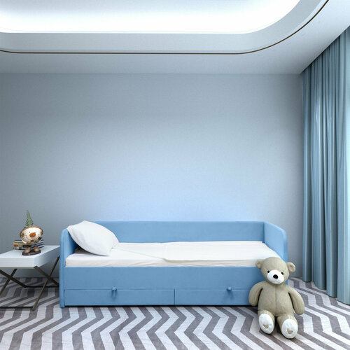 Кровать детская мягкая М-Стиль «Софт» 190х80 голубая на ортопедическом основании с ящиками для хранения: сравнение цен, характеристики, фото, актуальное наличие и цены.