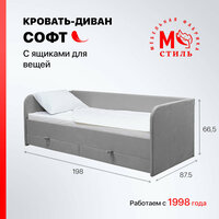 Диван-кровать Софт 1900*800 серая на ортопедическом основании с ящиками для хранения, кровать детская от 3 лет: сравнение цен, характеристики, фото, актуальное наличие и цены.