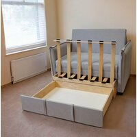 Купить Диван-кровать StylChairs Кира, с ящиком для белья, раскладное, обивка: ткань, цвет: светло-серый с доставкой по всей России.