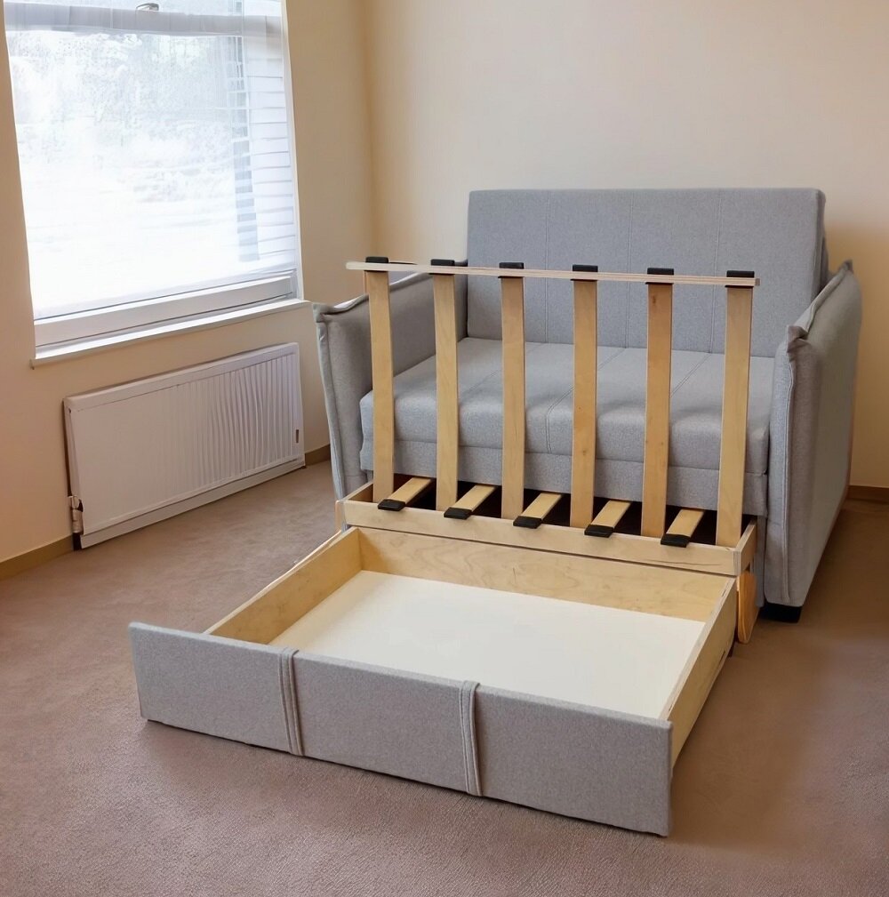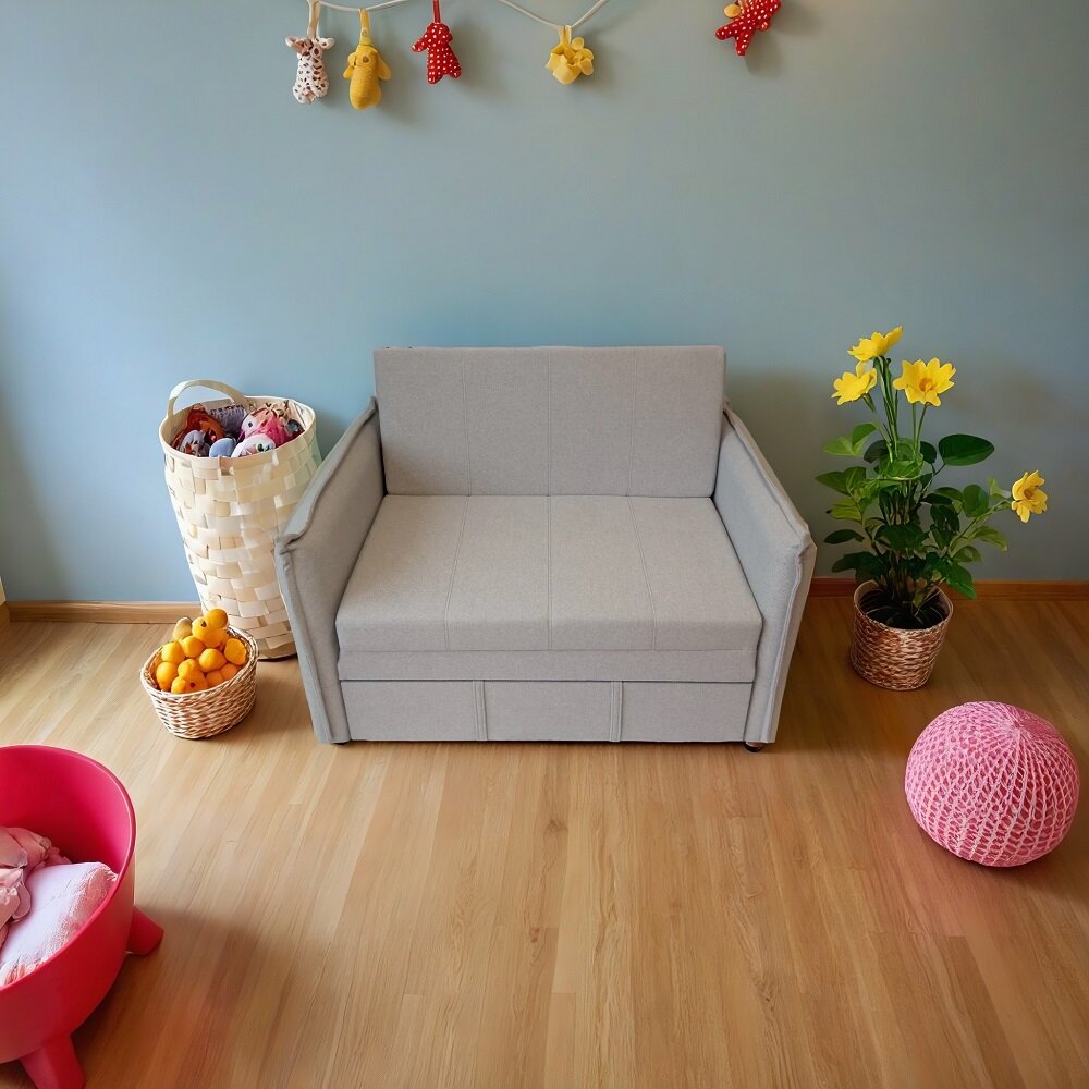 Диван-кровать StylChairs Кира, с ящиком для белья, раскладное, обивка: ткань, цвет: светло-серый: сравнение цен, характеристики, фото, актуальное наличие и цены.