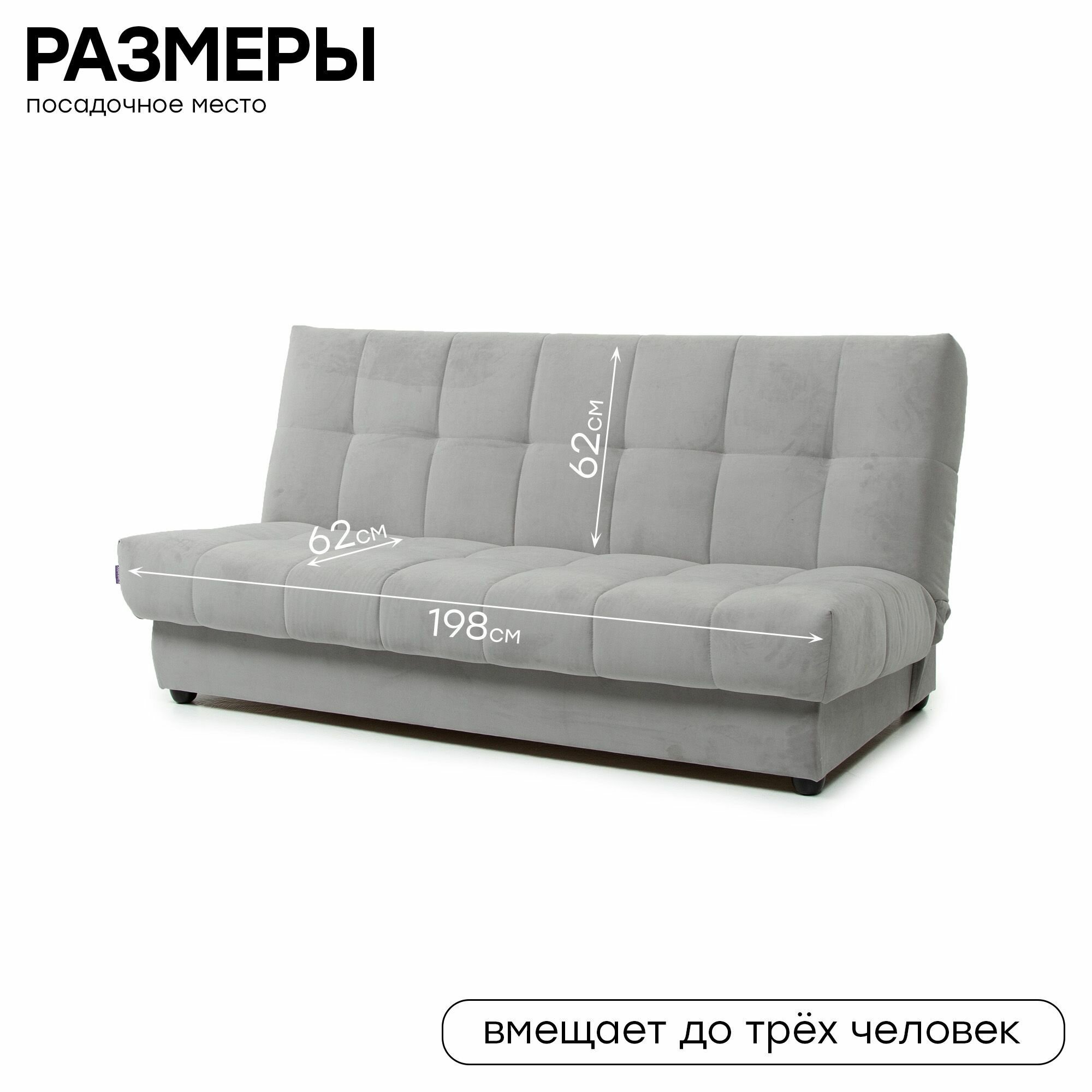 Диван раскладной прямой Венера 200 х 96 х 95 велюр, цвет серый: сравнение цен, характеристики, фото, актуальное наличие и цены.