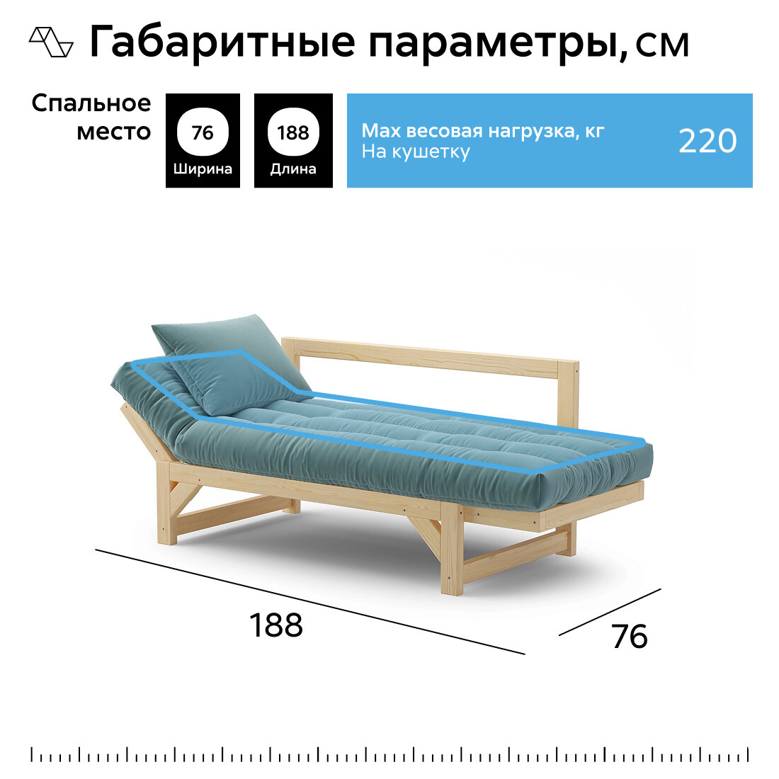 Диван-кушетка Амбер оснащен удобным и просторным спальным местом размером 74x188 см, что позволяет комфортно разместиться одному человеку. Максимальная нагрузка на диван составляет 220 кг.