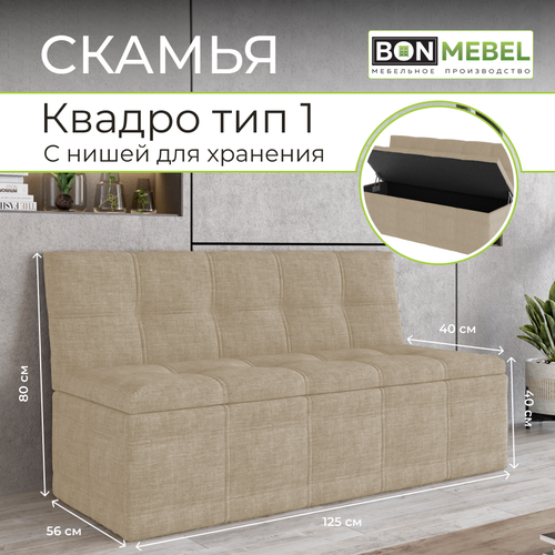 Диван BONMEBEL Квадро тип 1, ТК Бежевый, с ящиком, прямой, кухонный уголок, скамья, 125x56x80 см: сравнение цен, характеристики, фото, актуальное наличие и цены.