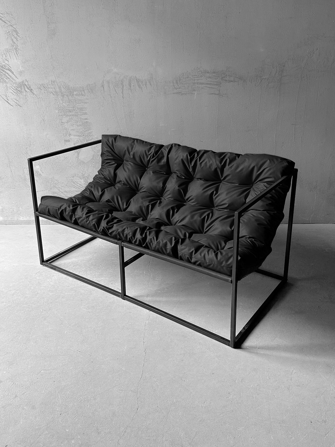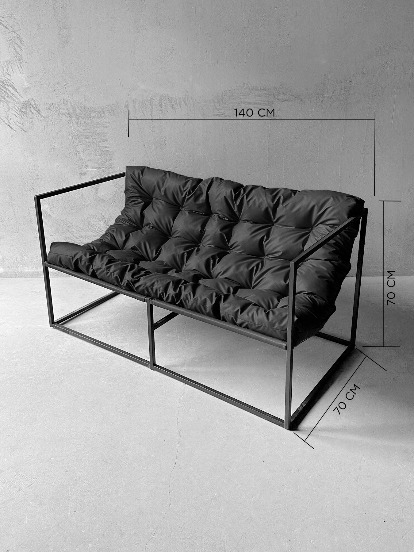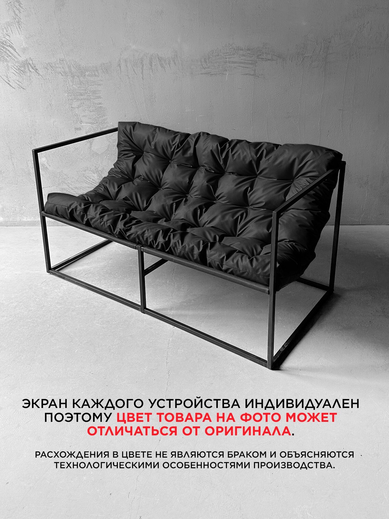Диван "Лофтовик" выполнен в стиле Лофт, который характеризуется лаконичностью линий и оригинальностью. Металлический каркас обеспечивает прочность и устойчивость, а порошковое окрашивание гарантирует долгий срок службы. Максимальная нагрузка на диван составляет 200 кг, что делает его надежным и долговечным.