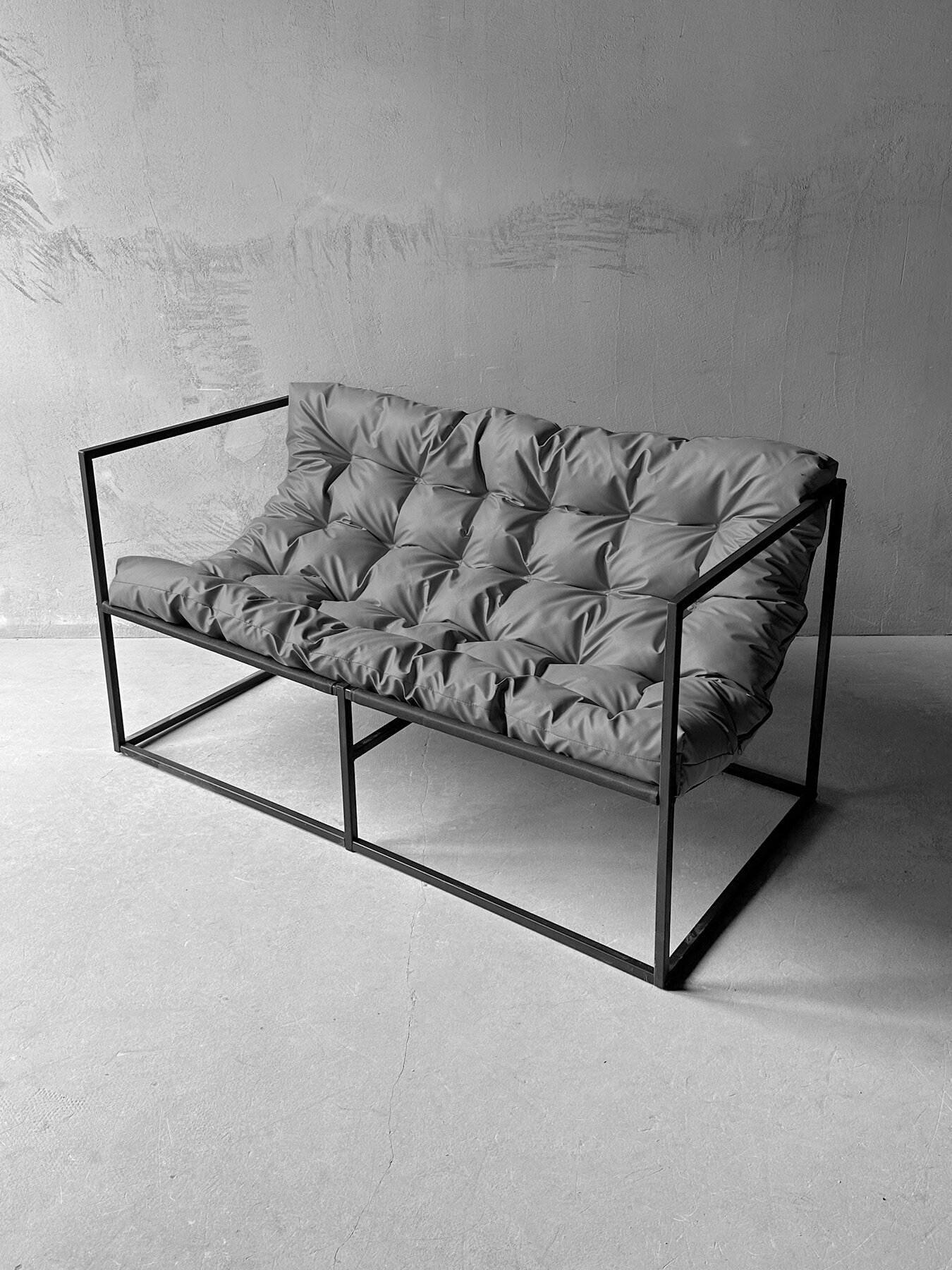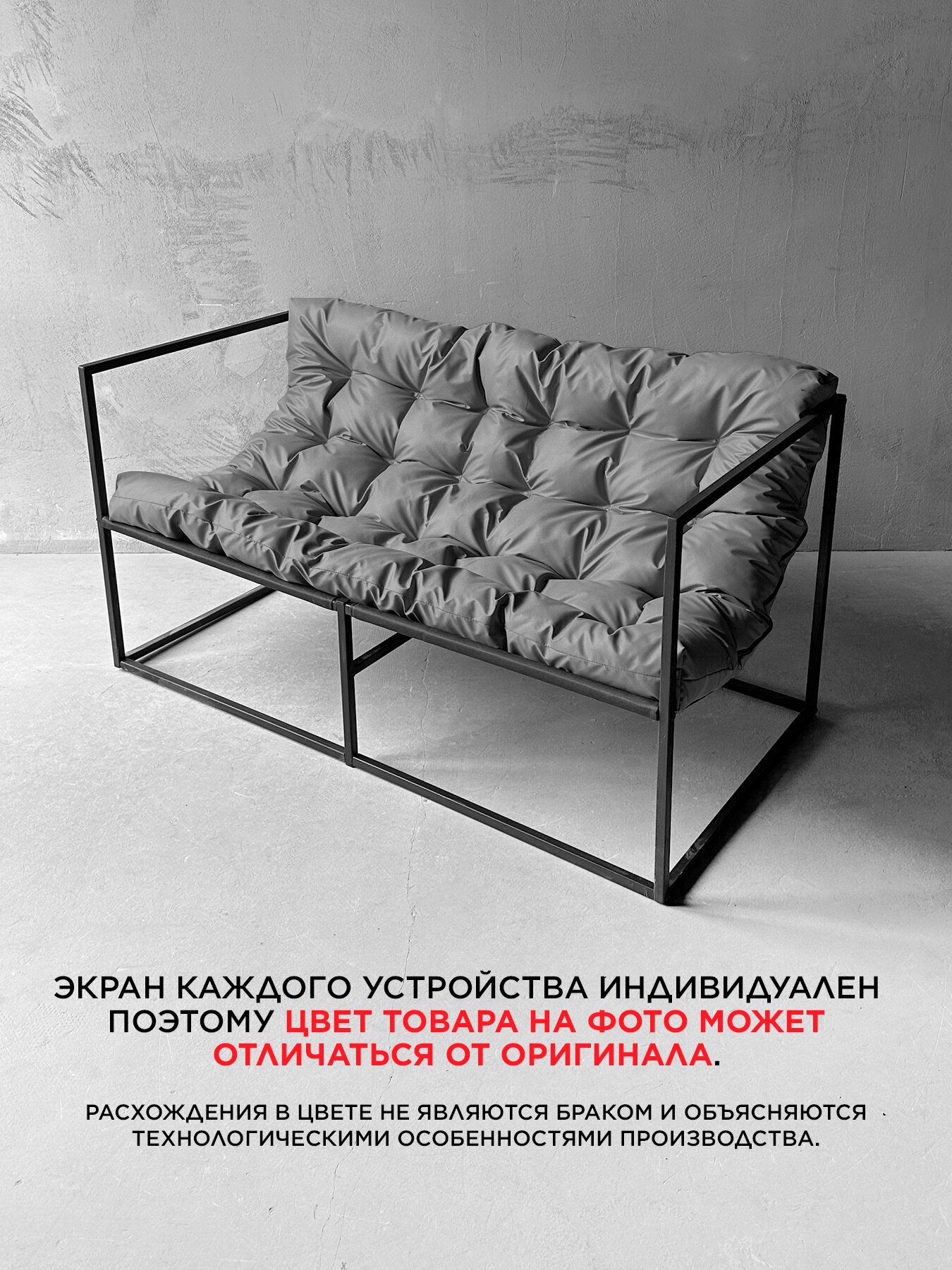 Диван "Лофтовик" выполнен в стиле Лофт, который характеризуется лаконичностью линий и оригинальностью. Металлический каркас обеспечивает прочность и устойчивость, а порошковое окрашивание гарантирует долгий срок службы. Максимальная нагрузка на диван составляет 200 кг, что делает его надежным и долговечным.