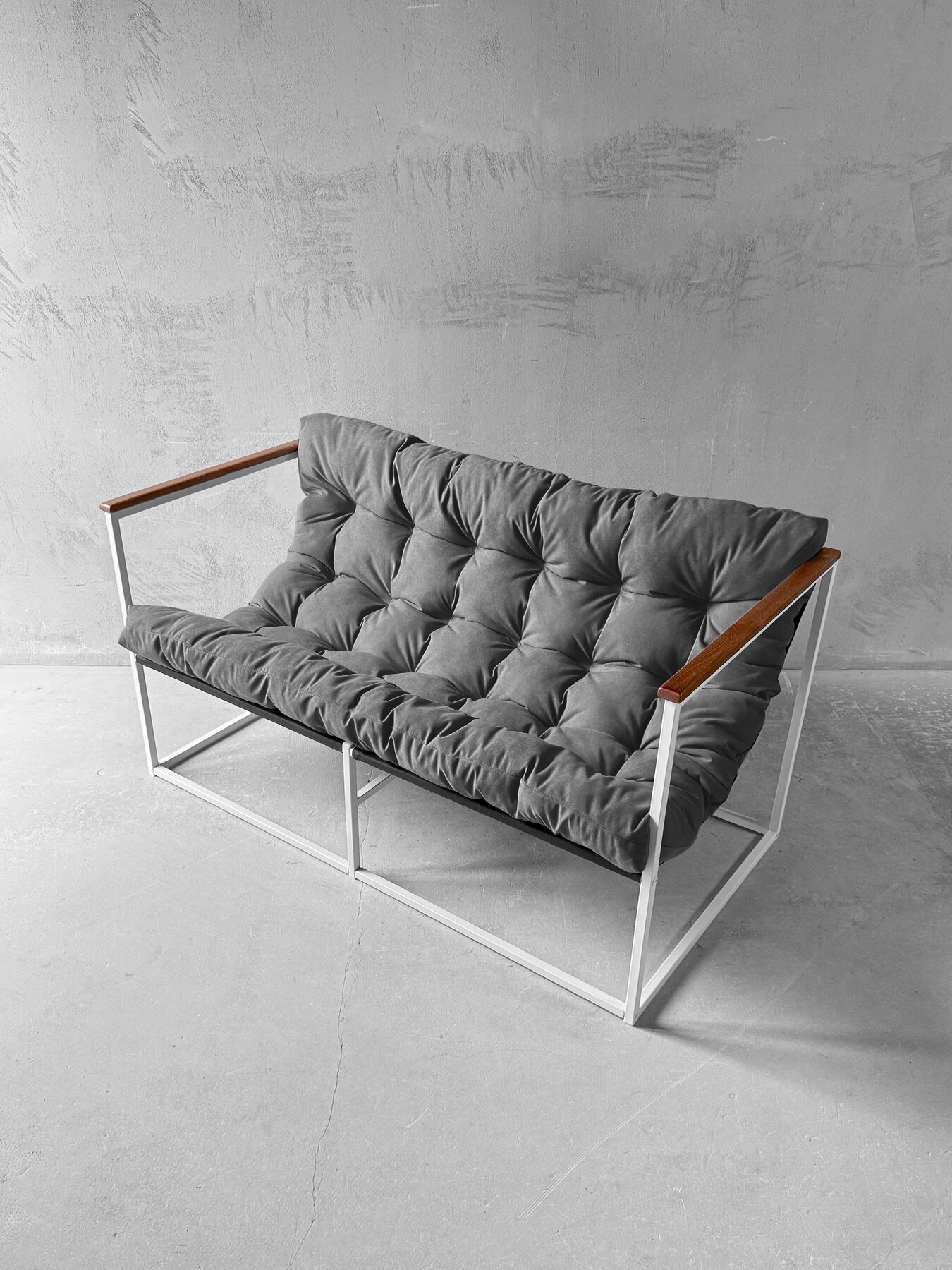 Купить Диван лофт прямой, уличный, в офис, на балкон, на веранду, в гостинную, кухонный, Лофтовик ++ велюр серый белый каркас с доставкой по всей России.