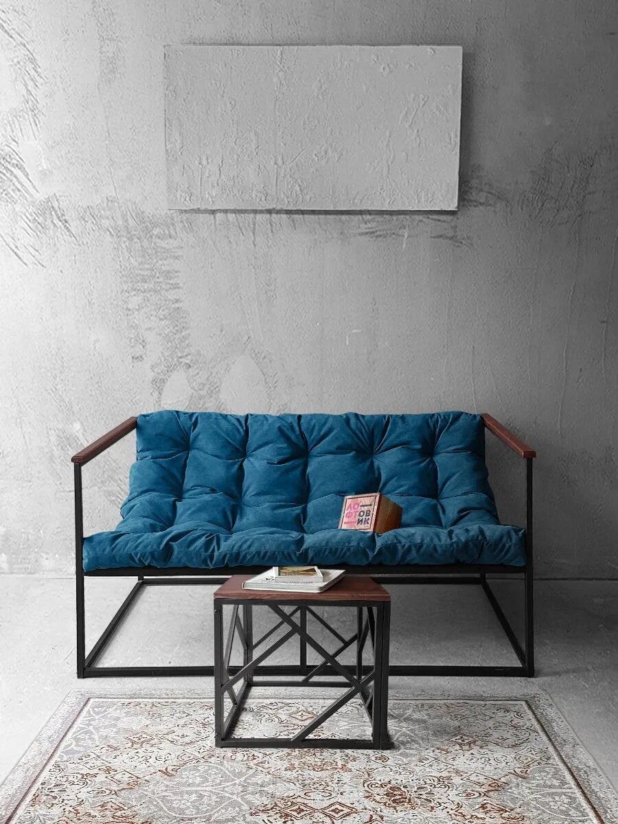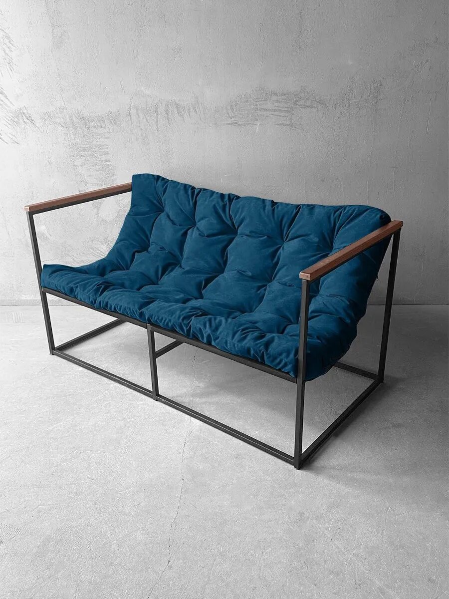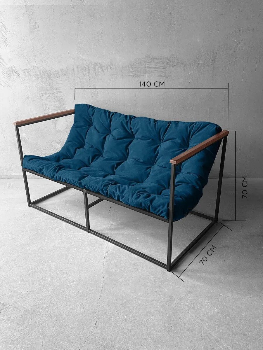 Диван лофт прямой, уличный, в офис, на балкон, на веранду, в гостинную, кухонный, Лофтовик ++ велюр синий: сравнение цен, характеристики, фото, актуальное наличие и цены.
