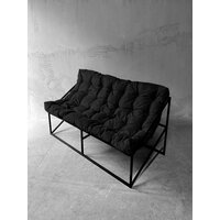 Купить Диван лофт прямой, уличный, в офис, на балкон, на веранду, в гостинную, кухонный, минимализм, Слэш + велюр черный с доставкой по всей России.
