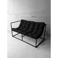 Купить Диван лофт прямой, уличный, в офис, на балкон, на веранду, в гостинную, кухонный, минимализм, Лофтовик + велюр черный с доставкой по всей России.