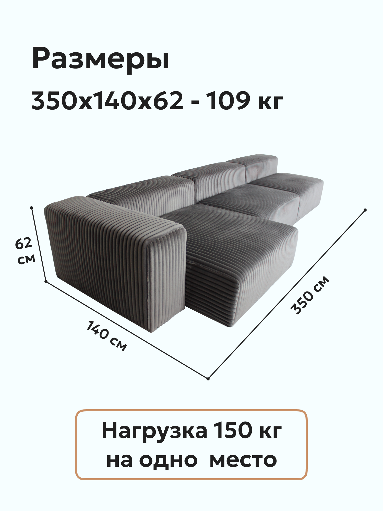 Купить Диван модульный Ромул, серый, 350x140x62 с доставкой по всей России. Диван модульный Ромул, серый, 350x140x62: сравнение цен, характеристики, фото, актуальное наличие и цены.
