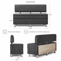 Представляем вашему вниманию стильный и функциональный диван норта Hippo, который станет идеальным дополнением для любой комнаты вашего дома или офиса. Благодаря своему универсальному дизайну и компактным габаритам 1200х490х770 мм, этот диван на кухню легко размещается не только в кухонной зоне, но и на балконе, в прихожей или даже в гостиной. Диван имеет прямую форму, что позволяет удобно располагать его вдоль стены, экономя пространство в небольших помещениях. Оригинальная конструкция включает в себя вместительный ящик для хранения, куда можно легко поместить посуду и кухонные принадлежности, что делает этот диван идеальным решением для тех, кто ценит порядок и функциональность. Изготовленный из качественных материалов, этот диван на балкон будет радовать вас своей долговечностью и надежностью. Прочная обивка устойчива к износу, а наполнитель сохраняет свою форму даже при длительном использовании. Это делает диван не только эстетически привлекательным, но и практичным в использовании. Особенное внимание стоит уделить универсальности данного дивана. Его можно использовать в офисе или зоне ожидания он создаст уютную атмосферу для посетителей и сотрудников. Также, данный диван станет отличным выбором для кафе, ресторанов, салонов красоты и парикмахерских, добавляя им дополнительный комфорт для клиентов. Этот диван подойдет для комнаты отдыха на даче, где можно расслабиться после насыщенного дня. Его стильный вид и удобство в использовании делают его отличным выбором для любого интерьера, будь то классический, современный или лофт. Таким образом, диван норта Hippo – это не просто мебель для кухни, а универсальное решение для разнообразных пространств, будь то лоджия, прихожая или даже профессиональная зона, как салон красоты. Выбирая данную модель, вы приобретаете удобный, стильный и практичный элемент интерьера, который прослужит вам долгие годы и станет любимым местом для отдыха и хранения нужных вещей.