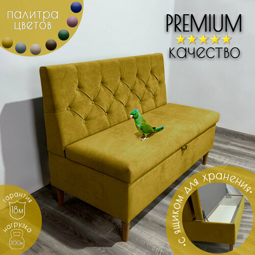 Диван маленький модульный в стиле лофт для дома на кухню, в гостиную, балкон коридор и для прихожей Рико / Мини диванчик домашний офисный, горчичный велюр, 140х59х85 см с ящиком для хранения
