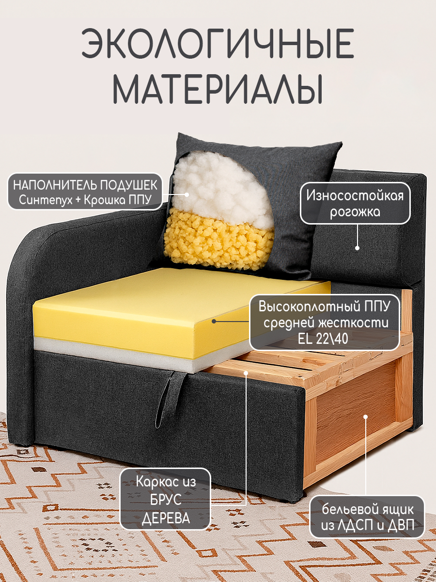 Диван кровать Некст Mini Комфорт, рогожка Grafit спальное место 120х190 см с коробом для белья, еврокнижка, EDLEN: сравнение цен, характеристики, фото, актуальное наличие и цены.