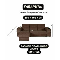 характеристики - Размер (см): 260х160х75 - Спальное место (см): 197х144 - Каркас: Фанера / ДСП / ЛДСП / - Нагрузка на спальное место (кг):180 - Вес (кг):173 - Наполнитель: ППУ - Гарантия производителя - 18 месяцев - НЕ универсальный угол