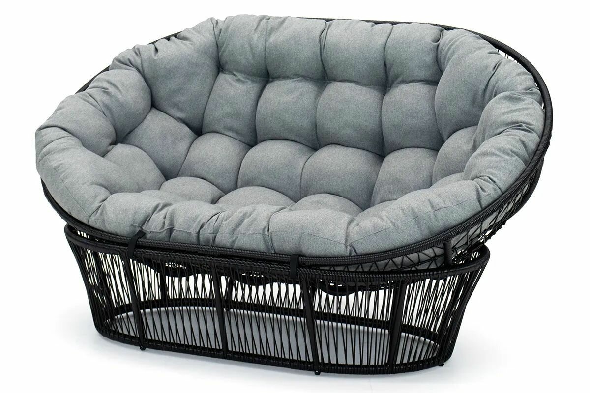 Купить Диван плетеный для отдыха KORNERA «МАМАСАН», искусственный ротанг черный, подушка серая с доставкой по всей России.