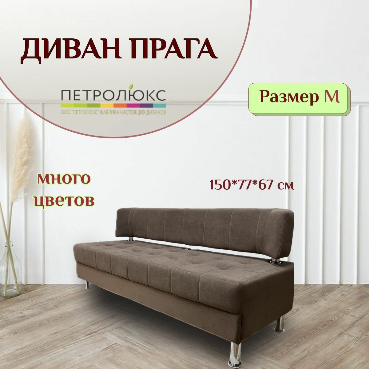 - Компактность: Это изделие не занимает много места и легко перемещается в зависимости от потребности. Не раскладной, без подлокотников узкий софа диван Прага эконом вариант, часто участвующий в распродажах.