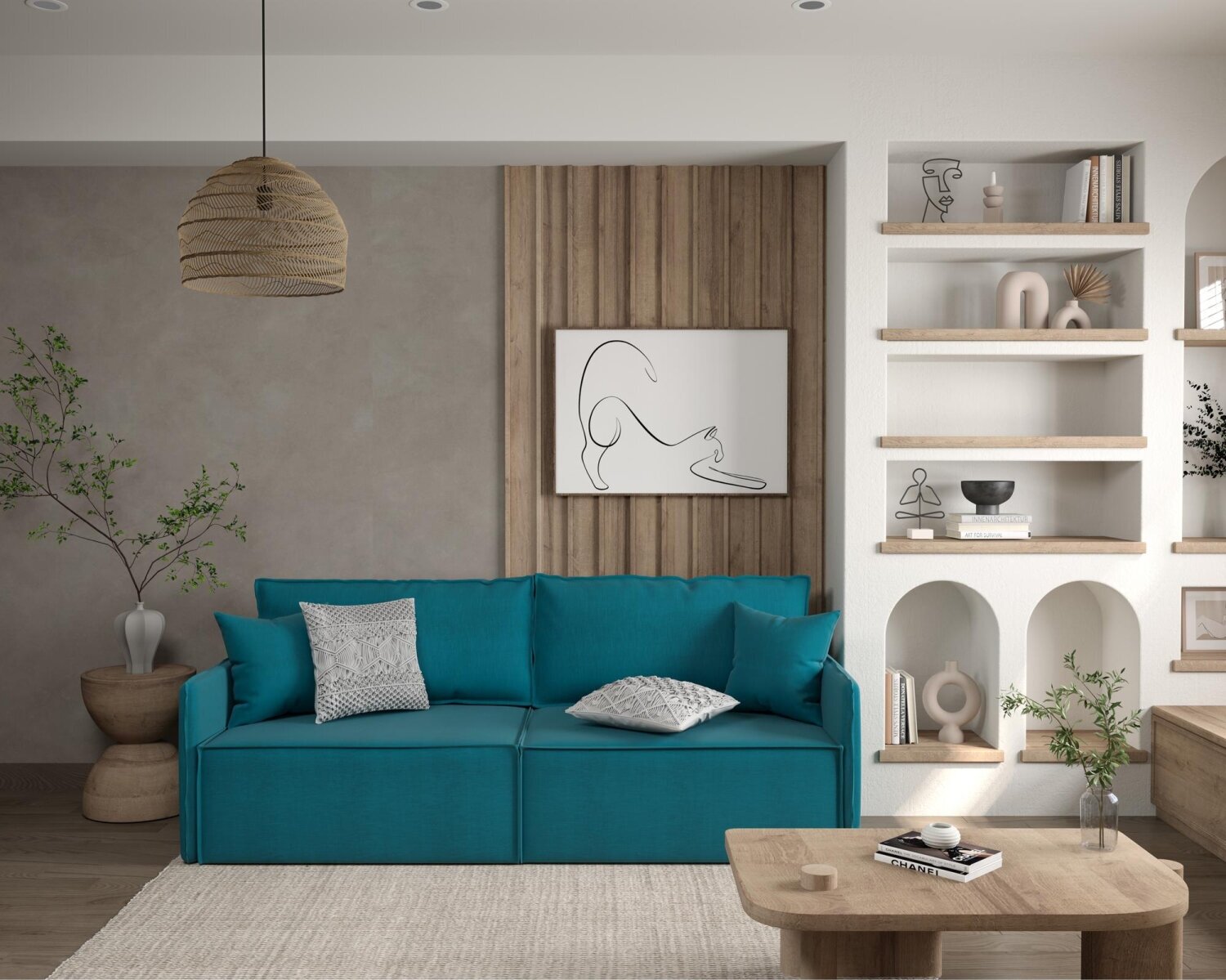 Купить Прямой диван Manons Maison Hygge Slim, раскладной механизм Еврокнижка, Рогожка бирюзовый, 218х100х86 см с доставкой по всей России.