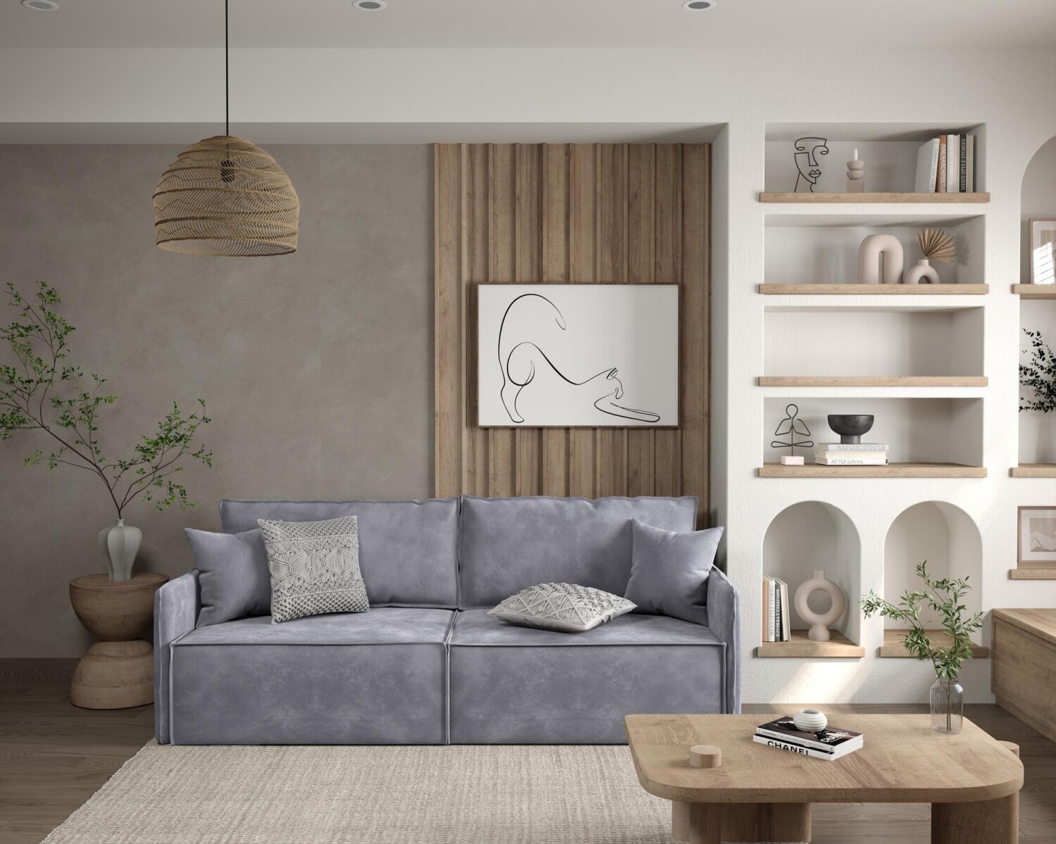 Прямой диван Manons Maison Hygge Slim, раскладной механизм Еврокнижка, Велюр серый, 218х100х86 см: сравнение цен, характеристики, фото, актуальное наличие и цены.