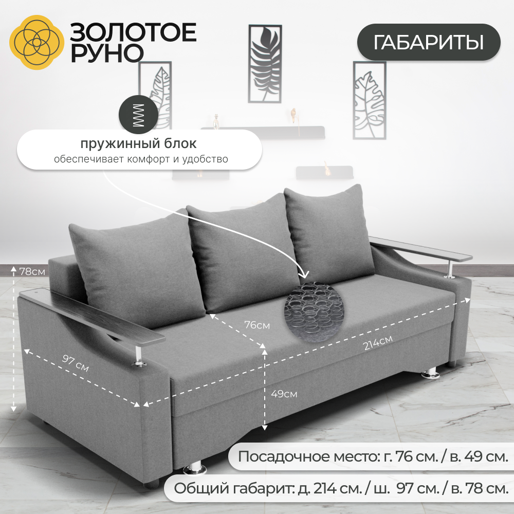 Вес дивана составляет всего 104 кг, что облегчает его перемещение и транспортировку.