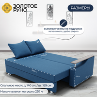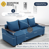 Диван "Квадро-1" имеет размеры 214х78х76 см, что позволяет разместить его даже в небольших помещениях. При этом, ширина спального места составляет 140 см, а длина - 189 см. Это обеспечивает комфортный сон и отдых для двух человек.