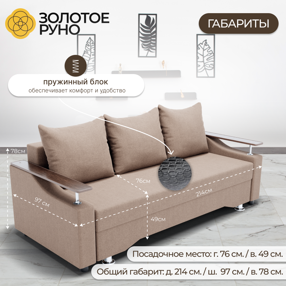Особенностью дивана является его раскладная конструкция, которая позволяет легко и быстро трансформировать его в удобное спальное место.