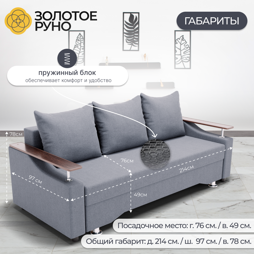 Максимальная нагрузка на диван составляет 220 кг, что делает его подходящим для людей разного телосложения.