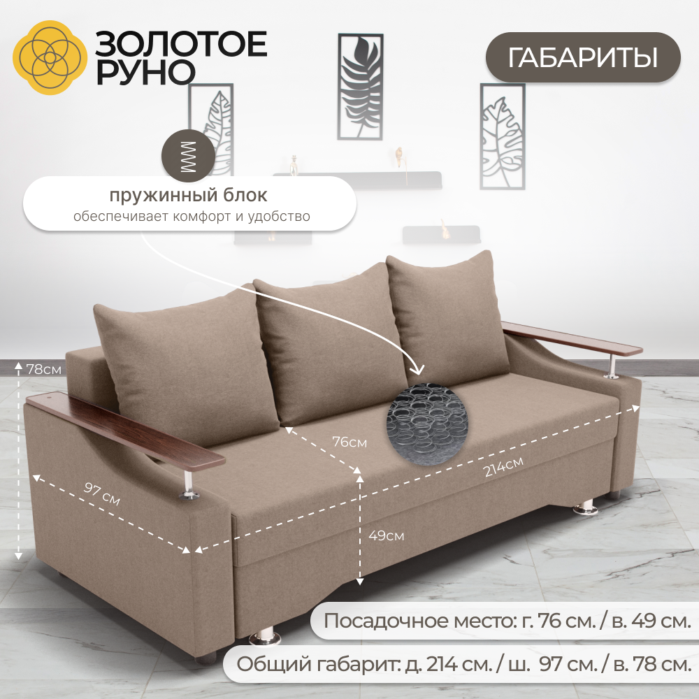 Максимальная нагрузка на диван составляет 220 кг, что делает его подходящим для людей разного телосложения.