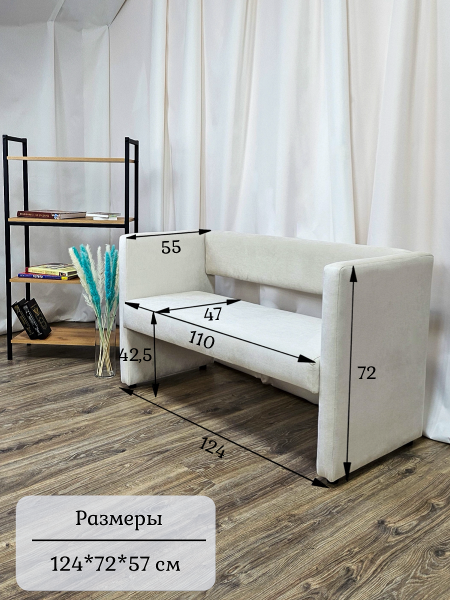 Диван прямой Мисса, велюр белый, для дома, офиса, зоны ожидания, на кухню, балкон, прихожую 124х72х57 EDLEN: сравнение цен, характеристики, фото, актуальное наличие и цены.