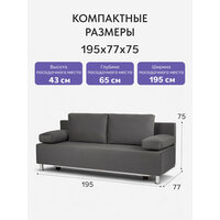 Диван прямой «Морис» серый, велюр, двуспальный, Еврокнижка, Диван 24