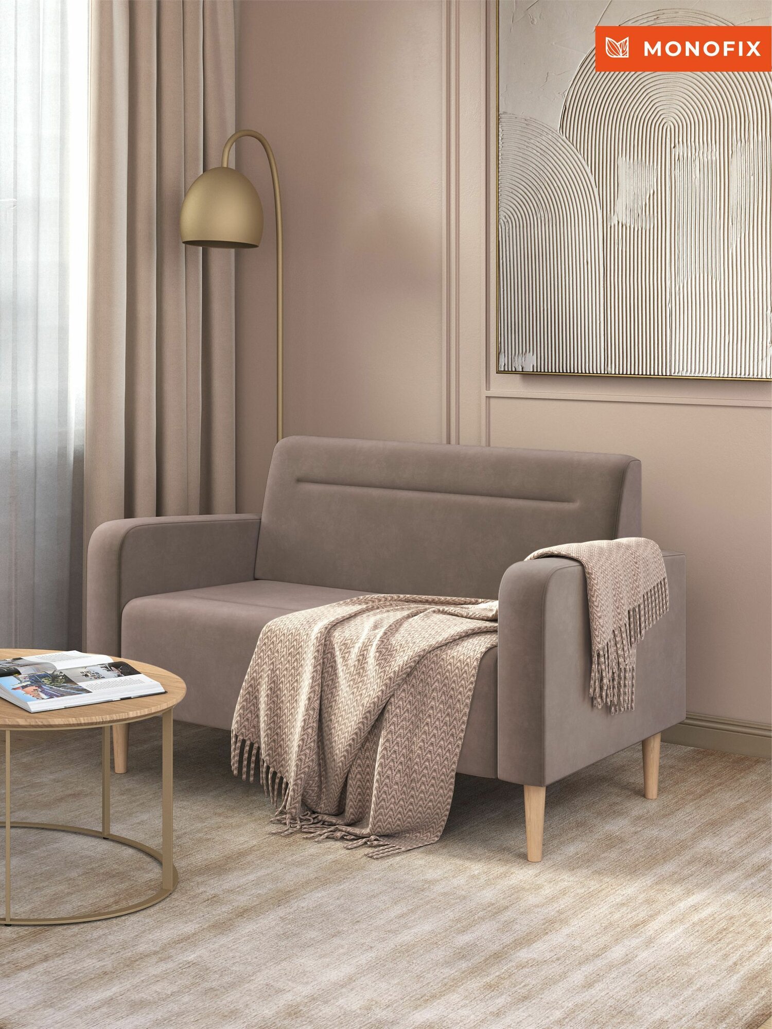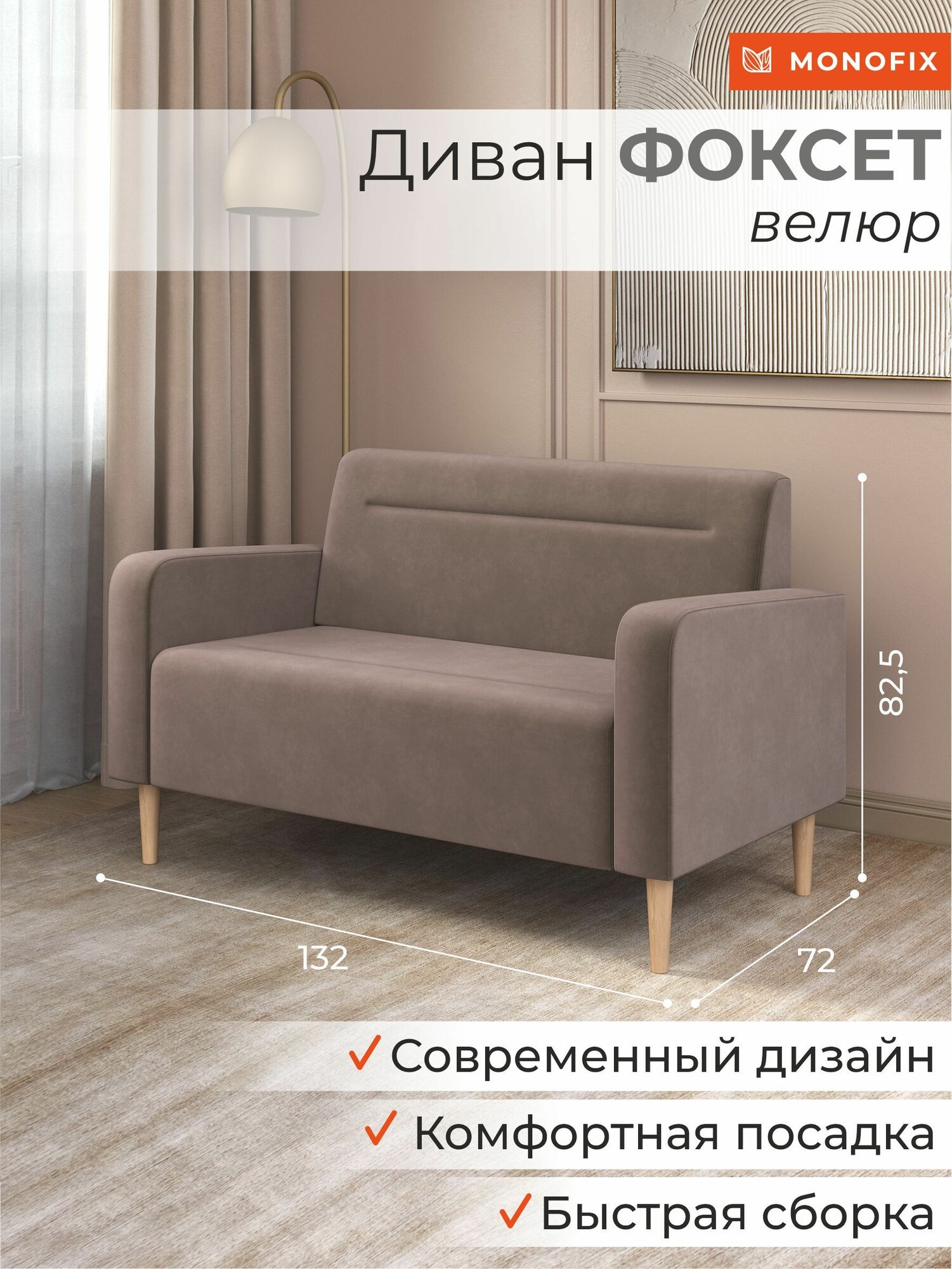 Диван прямой нераскладной MONOFIX фоксет 132 см велюр светло-коричневый №6: сравнение цен, характеристики, фото, актуальное наличие и цены.