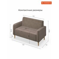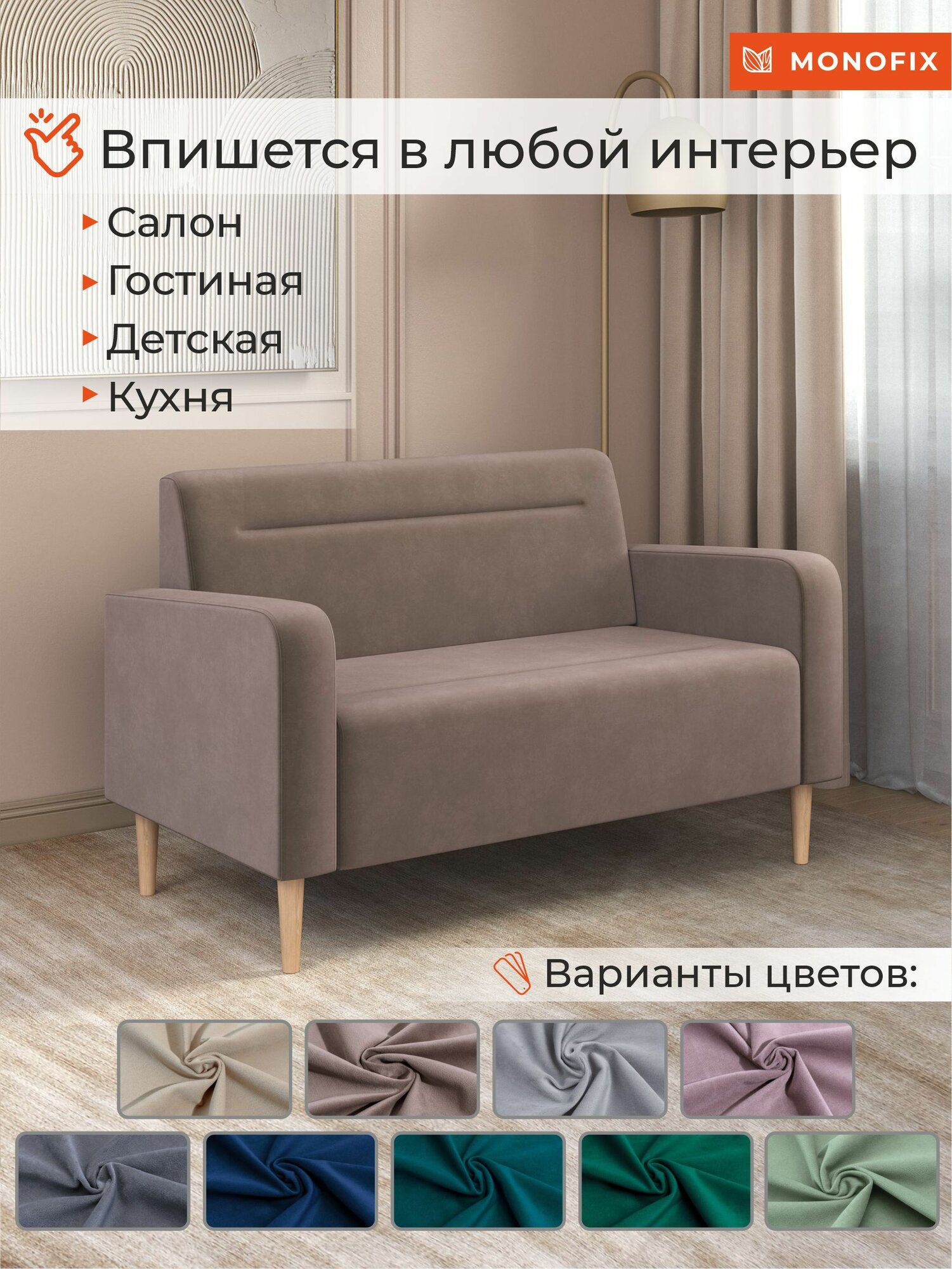Купить Диван прямой нераскладной MONOFIX фоксет 132 см велюр светло-коричневый №6 с доставкой по всей России.