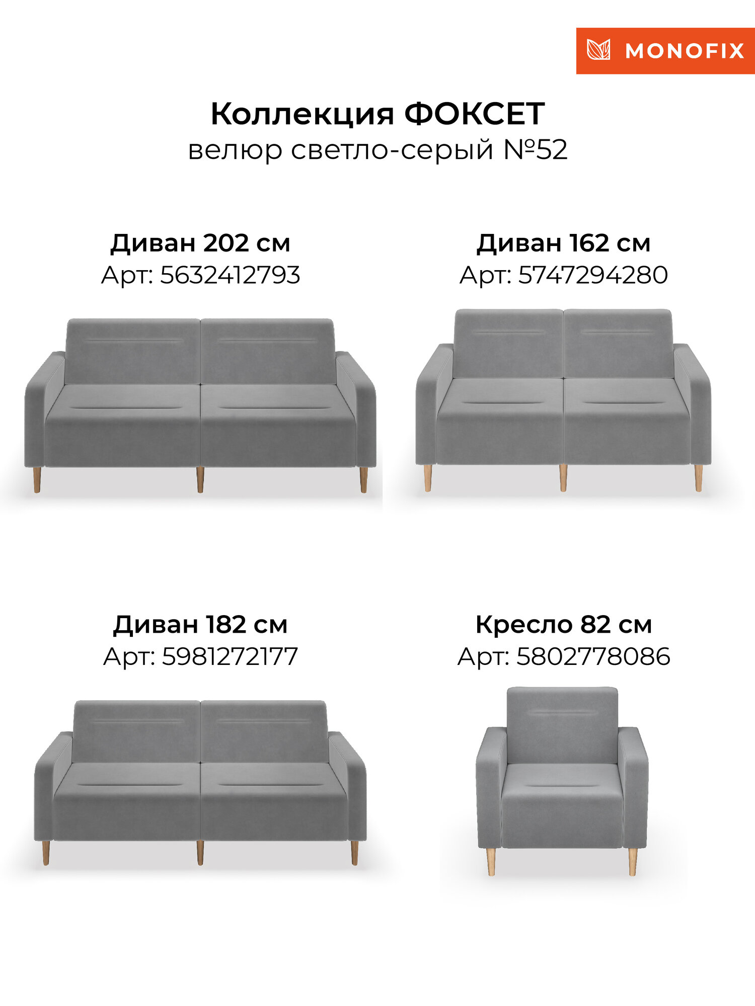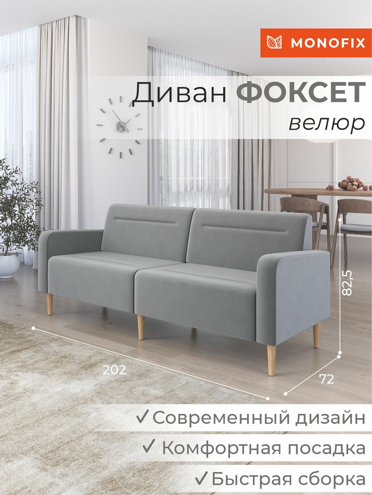 Купить Диван прямой нераскладной MONOFIX фоксет 202 см велюр светло-серый (52) с доставкой по всей России. Диван прямой нераскладной MONOFIX фоксет 202 см велюр светло-серый (52): сравнение цен, характеристики, фото, актуальное наличие и цены.