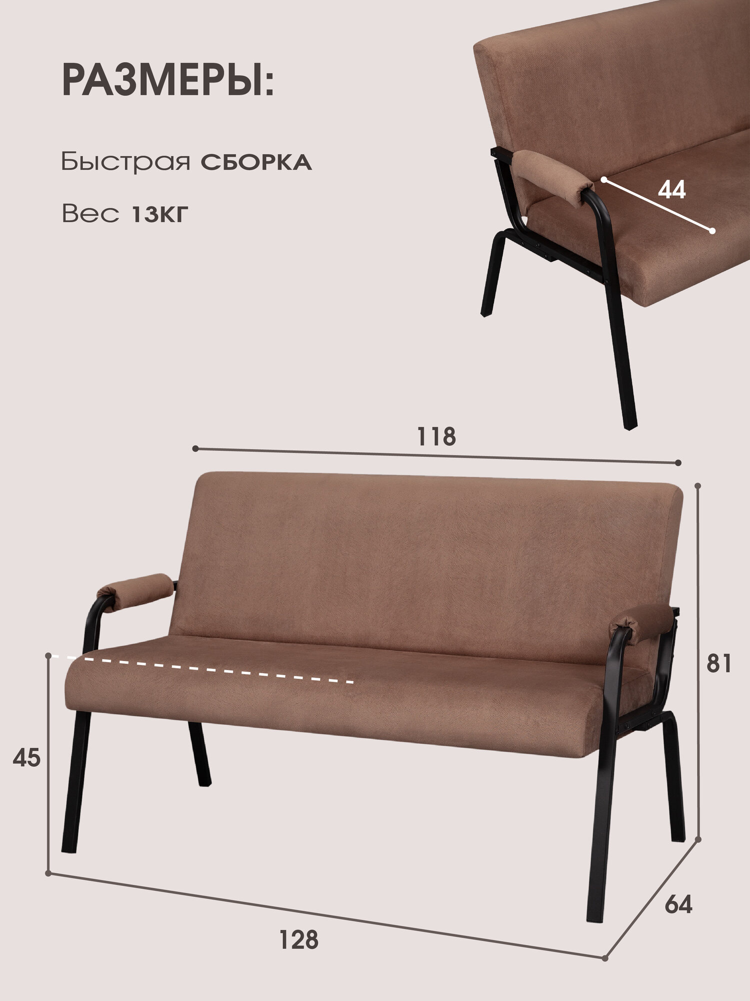 Диван прямой нераскладной мягкий Лацио, размер 128х64х81 см, обивка флок коричневый, Ами Мебель Беларусь: сравнение цен, характеристики, фото, актуальное наличие и цены.