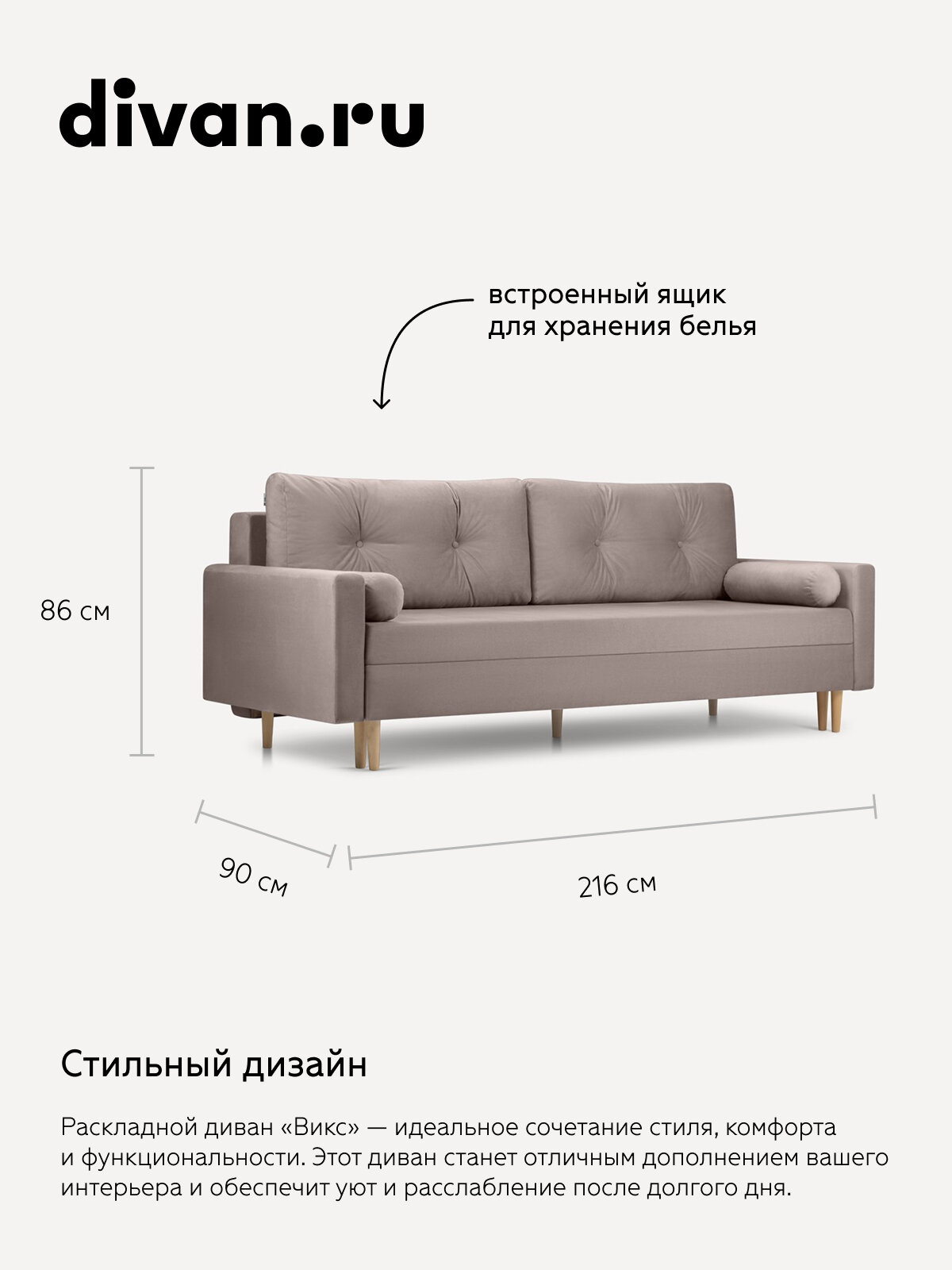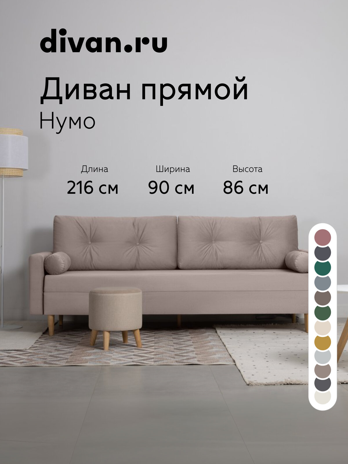 Диван прямой Нумо Velvet Coffe, divan.ru, светло-коричневый, прямой, раскладной, еврокнижка, 216x90x86 см: сравнение цен, характеристики, фото, актуальное наличие и цены.