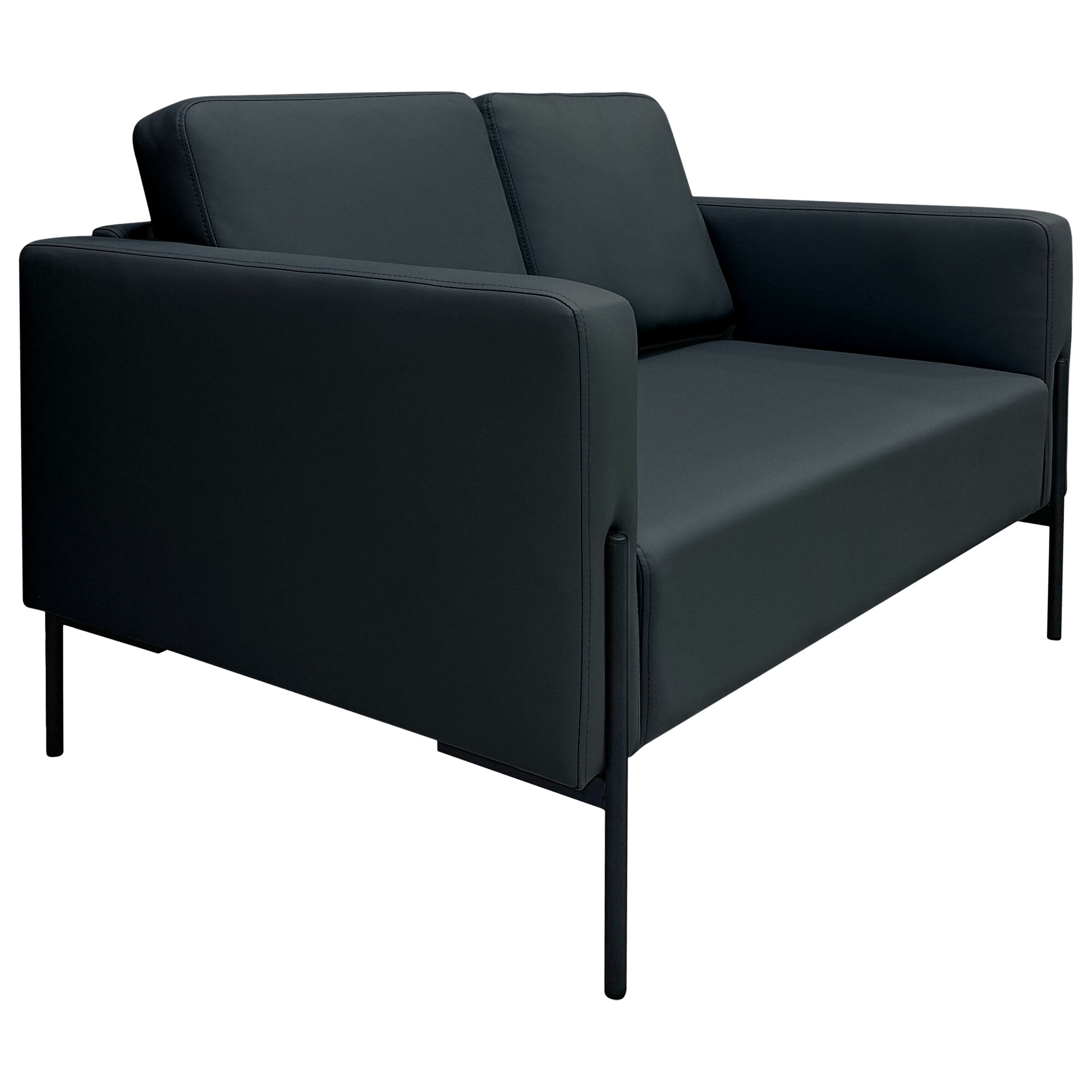 Купить Диван прямой Офис подлокотниками, черная эко-кожа. Офис, салон красоты, зона ожидания, прихожая, гостиная с доставкой по всей России.