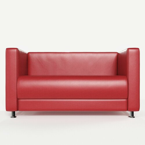 Диван прямой офисный из эко кожи с подлокотниками Пауза (Красный 150)